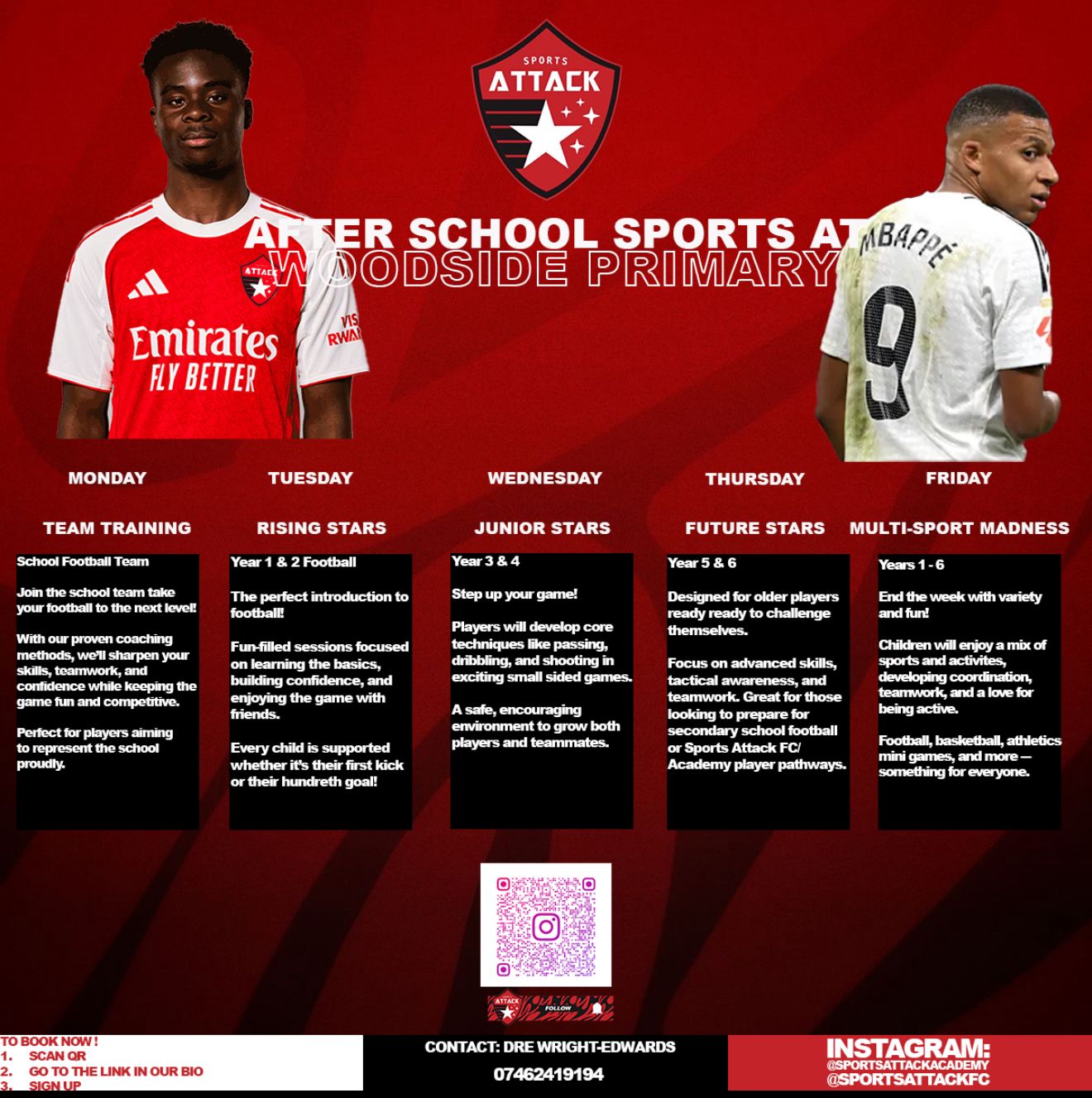 We also work very closely with Sports Attack who provide lunchtime enrichment opportunities for KS2 as well as running after school clubs.